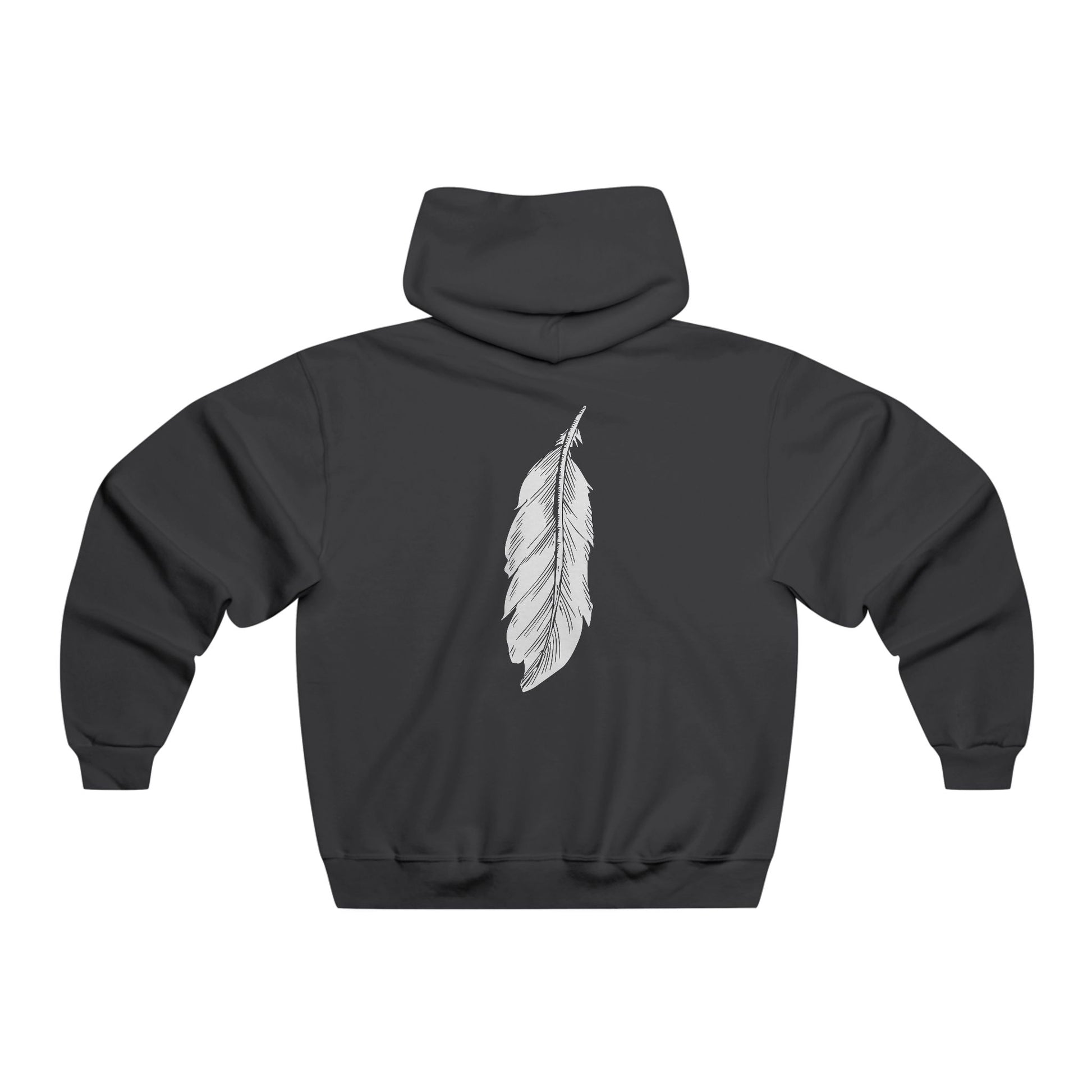 This loose-fit hooded sweatshirt brings quiet, thoughtful style into everyday wear. Soft, mid-weight fabric wraps you in a subtle warmth while the smooth print—an inked feather flowing down the back and a small emblem at the chest—reads like a quiet signature. The roomy kangaroo pocket and adjustable drawstring hood make it easy to layer on blustery mornings or slow evenings. It’s the kind of piece you reach for when you want comfort without shouting—an understated, artful layer that settles into your routine and keeps the focus on intent and calm.